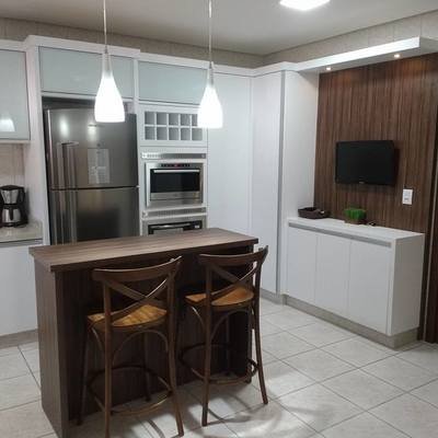 Atributos e altura: O modelo pode depender do gosto dos moradores: com ou sem cooktop, com ou sem coifa, com espaço para preparo de alimentos, com pia ou apenas uma bancada para refeição e outros atributos. O importante é seguir um padrão de altura que é de 0,90m a 1,10m para que as atividades sejam feitas com conforto.
