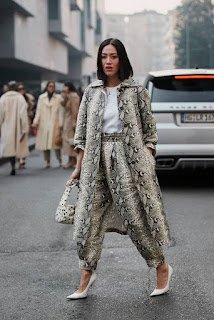 fato que a estampa de cobra, em cinza e branco, é super comum nesta época do