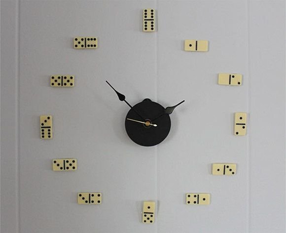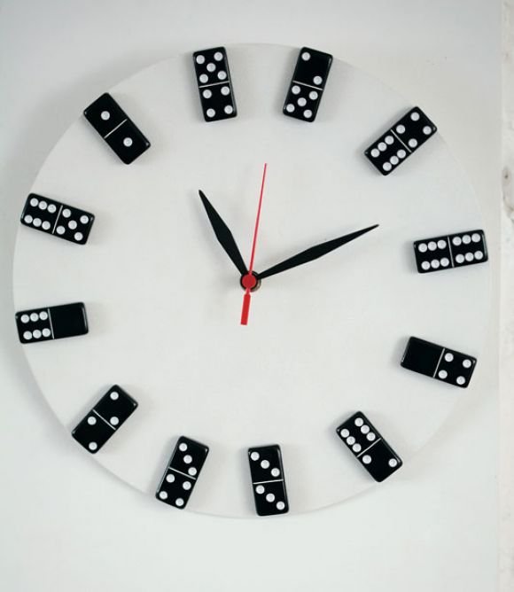 Quase todo mundo tem um joguinho de dominó velho em casa aposentado, se você também tem uma dica legal é utilizá-lo como algarismos num relógio reciclado.