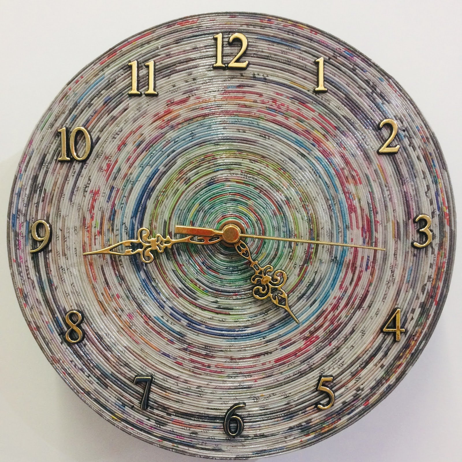A base do relógio é uma das partes mais importantes e com um toque de criatividade, você pode fazer uma customizada em forma de quadro com mosaico de recortes de papel ou mesmo colar essas peças de papel sobre um relógio já existente.