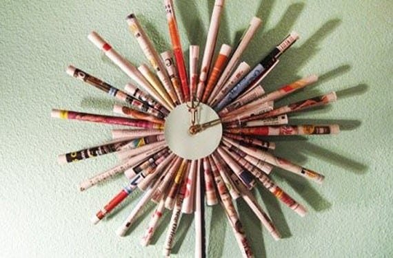 Tendo mecanismos de relógio é possível criar uma infinidade de modelos com os mais diversos tipos materiais. Porém, se você deseja apenas um artigo de decoração com elementos recicláveis pode trabalhar com uma ideia mais orgânica e sem o mecanismo. Criar relógios de sol também é alternativa e pode ficar super cool para dar um visual diferente a sua casa.